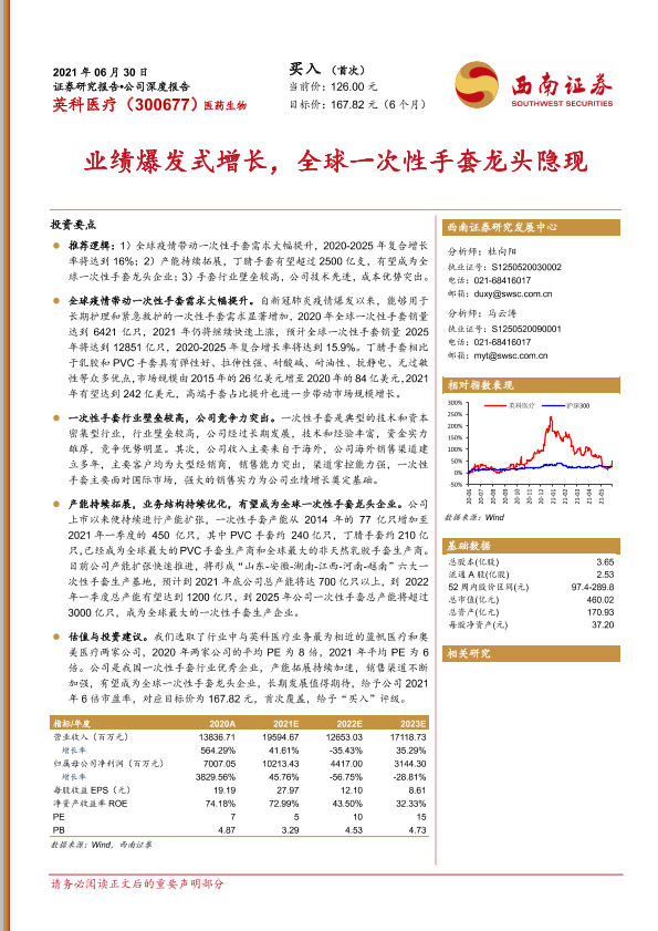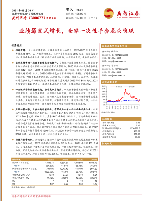 【西南证券】【20210630】英科医疗:业绩爆发式增长,全球一次性手套龙头隐现-26页