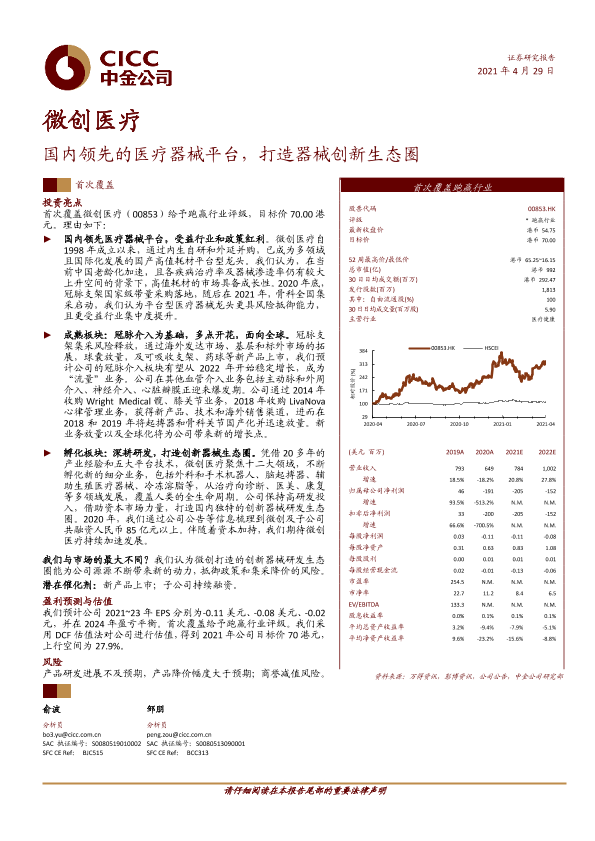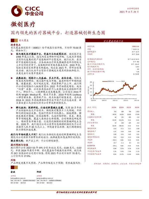 【中金公司】【20210429】微创医疗:国内领先的医疗器械平台,打造器械创新生态圈-35页