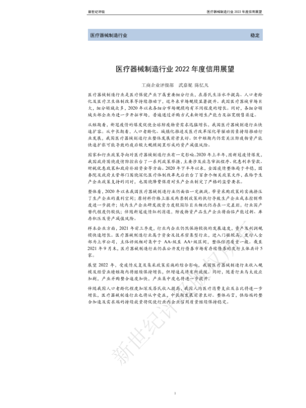 【新世纪评级】【202201】医疗器械制造行业2022年度信用展望-21页