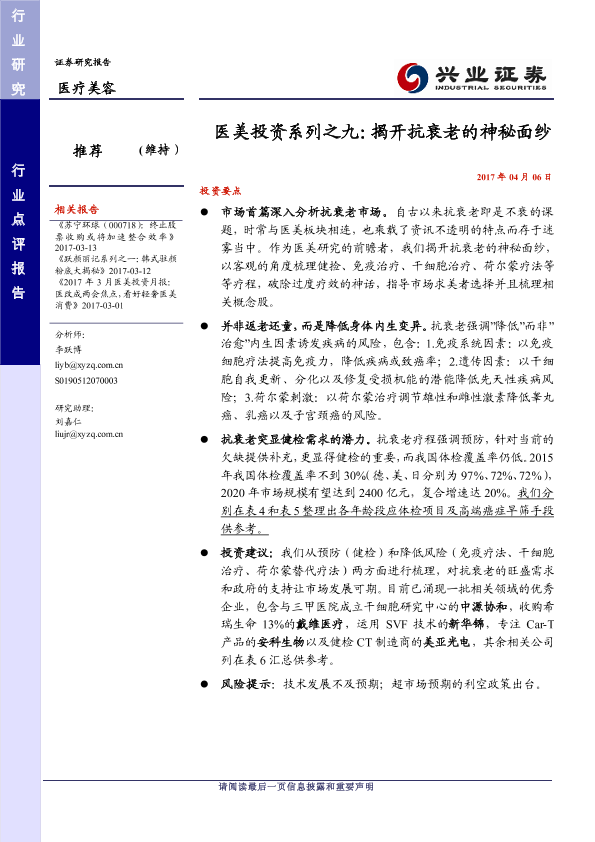 【兴业证券】【20170406】医美投资系列之九:揭开抗衰老的神秘面纱-25页