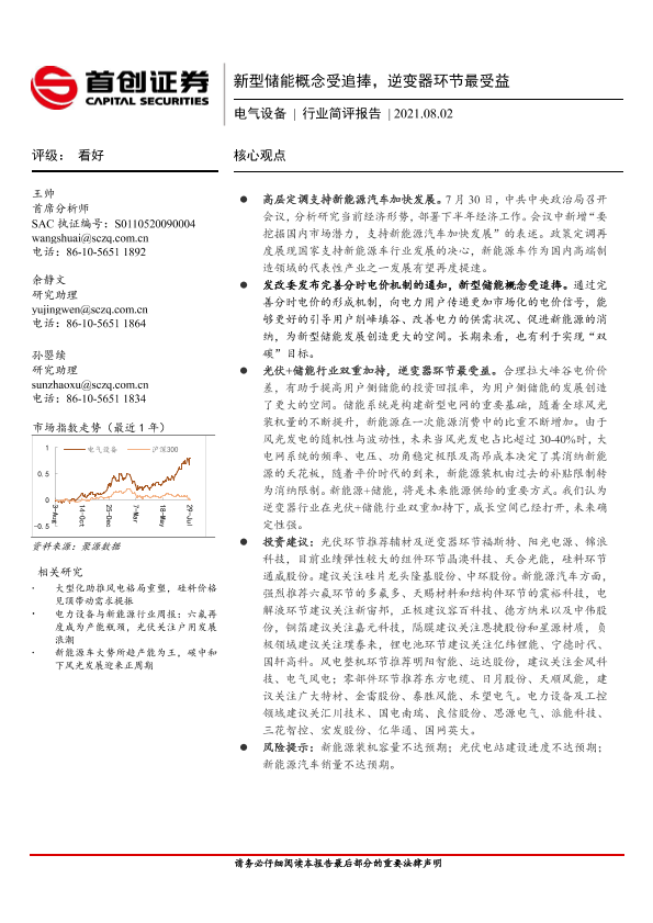 【首创证券】【20210802】电气设备行业简评报告:新型储能概念受追捧,逆变器环节最受益-17页
