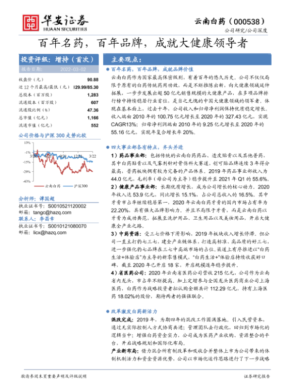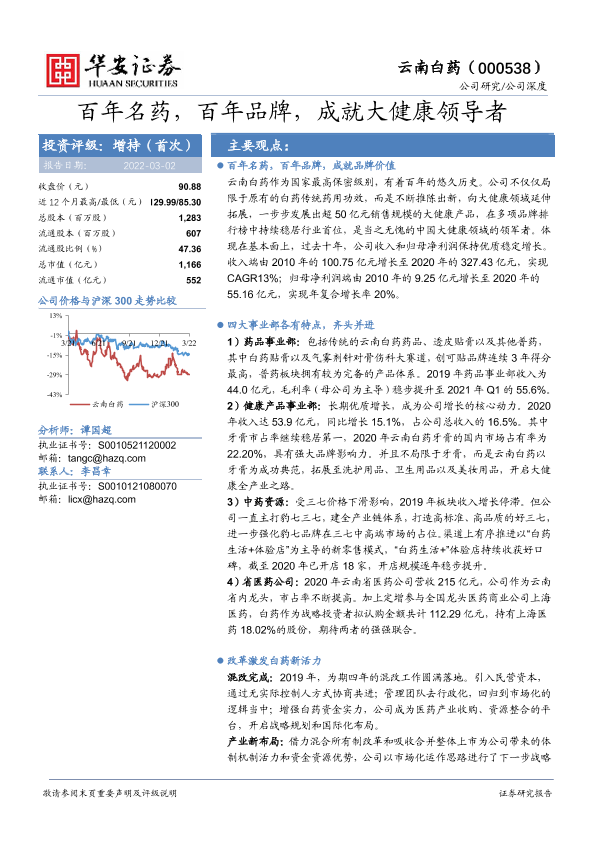 【华安证券】【20220302】云南白药:百年名药,百年品牌,成就大健康领导者-30页