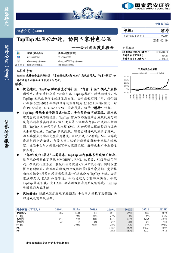 【国泰君安证券】【20210219】心动公司:TapTap社区化加速,协同内容特色凸显-28页