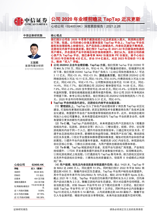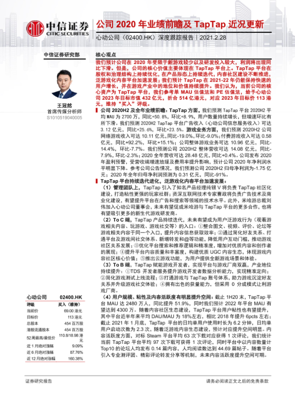 【中信证券】【20210228】心动公司:公司2020年业绩前瞻及TapTap近况更新-23页