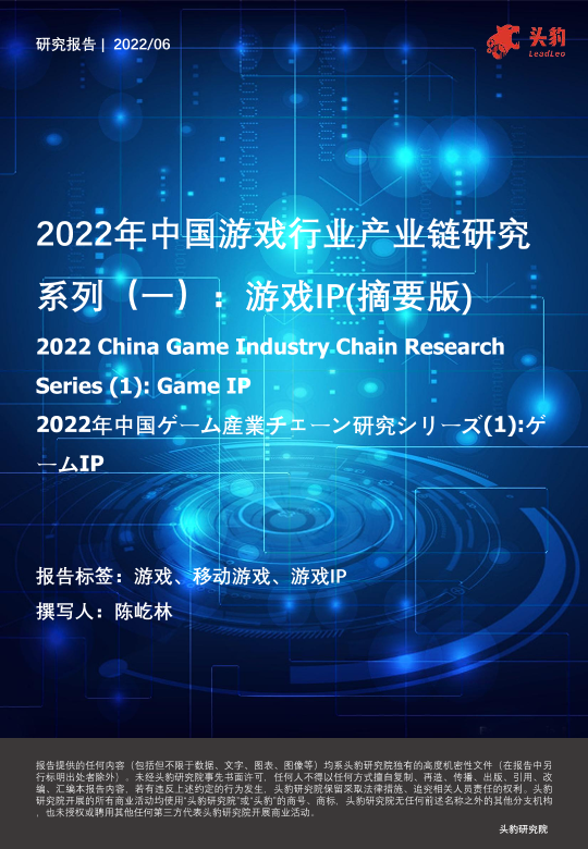 【头豹研究院】【202206】2022年中国游戏行业产业链研究系列(一)-游戏IP(摘要版)-16页