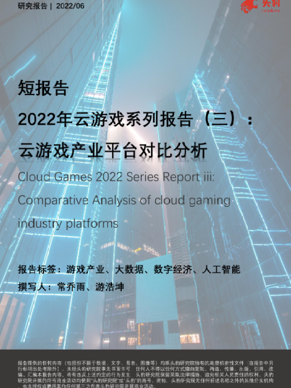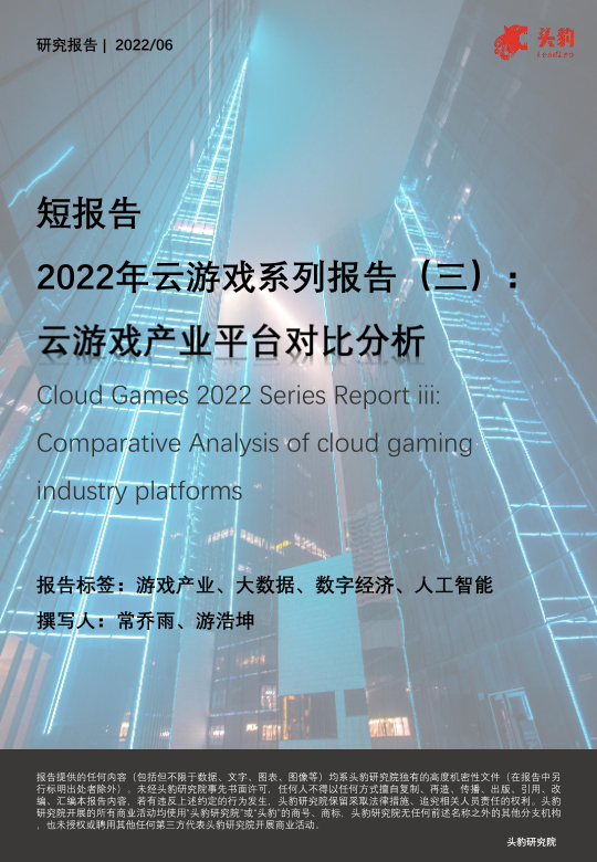 【头豹研究院】【202206】2022年云游戏系列报告(三):云游戏产业平台对比分析-15页