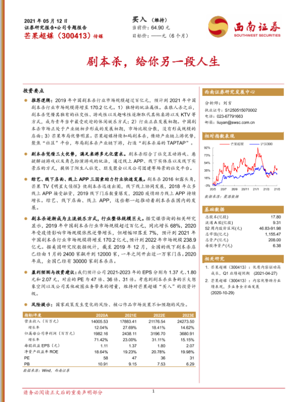【西南证券】【20210512】芒果超媒:剧本杀,给你另一段人生-35页