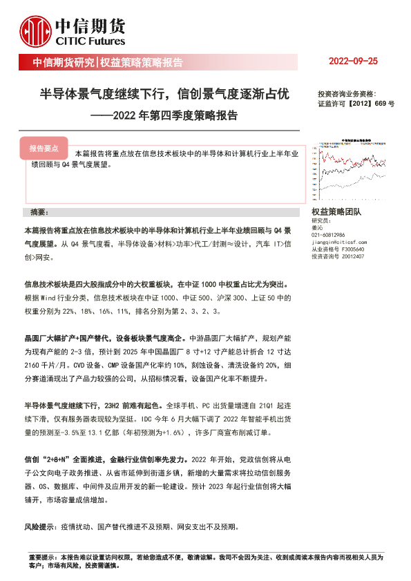 【中信期货】【20220925】2022年第四季度策略报告:半导体景气度继续下行,信创景气度逐渐占优-10页