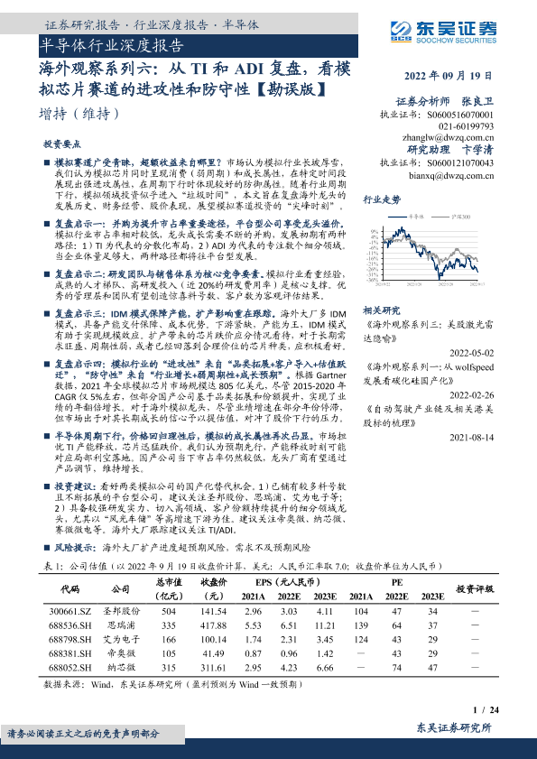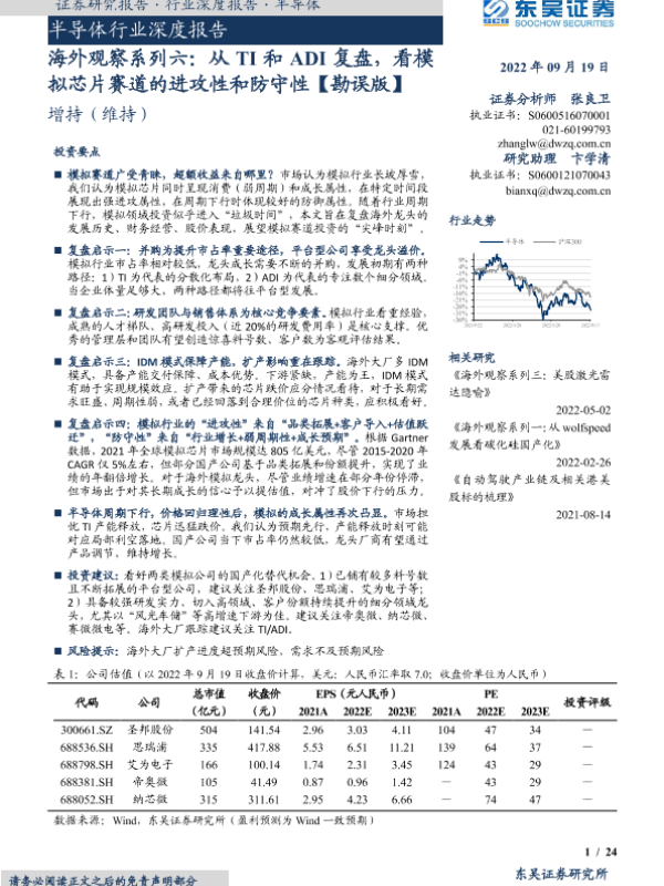 【东吴证券】【20220919】海外观察系列六:从TI和ADI复盘,看模拟芯片赛道的进攻性和防守性-24页