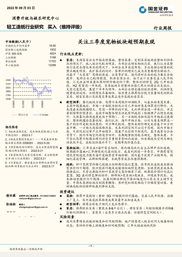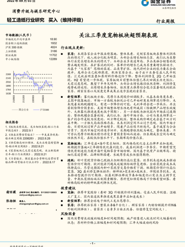【国金证券】【20220903】轻工造纸行业周报:关注三季度宠物板块超预期表现-18页