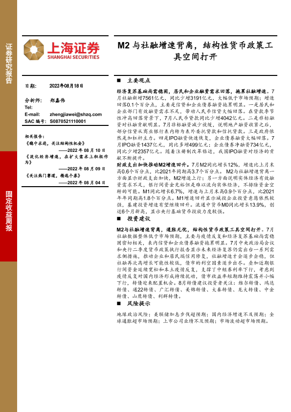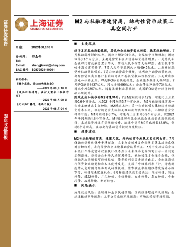 【上海证券】【20220818】M2与社融增速背离,结构性货币政策工具空间打开-22页