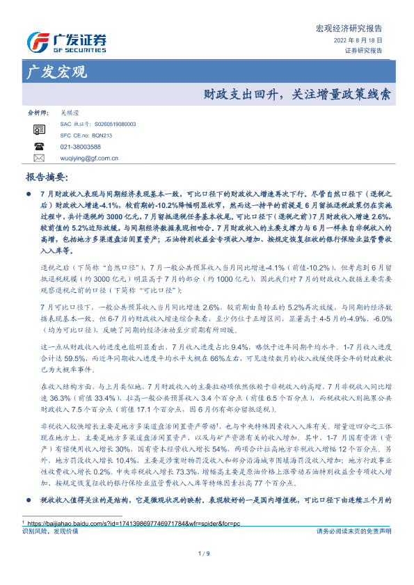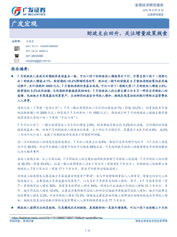 【广发证券】【20220818】财政支出回升,关注增量政策线索-9页