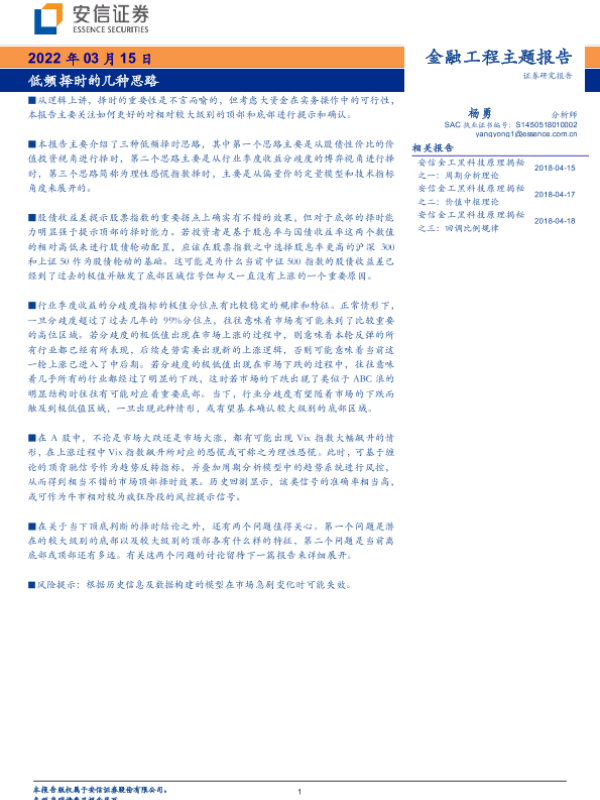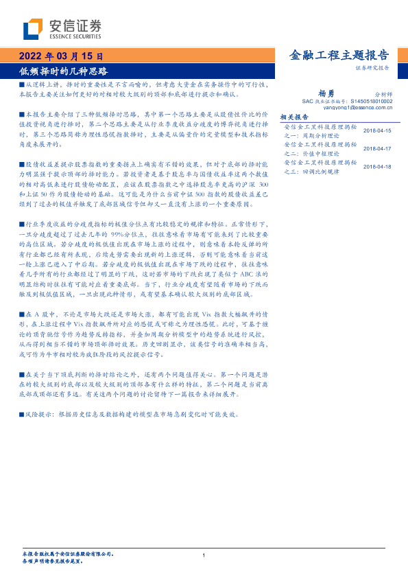 【安信证券】【20220315】金融工程主题报告:低频择时的几种思路-16页