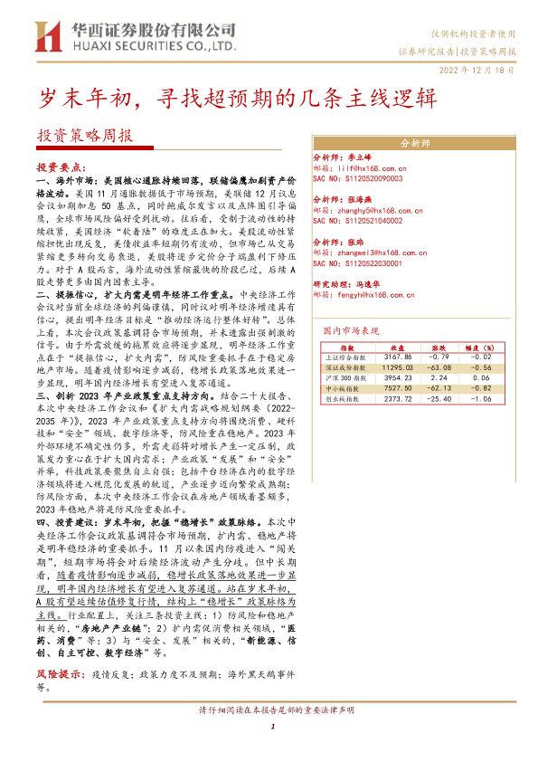 【华西证券】【20221218】20221218-华西证券-投资策略周报:岁末年初,寻找超预期的几条主线逻辑-11页
