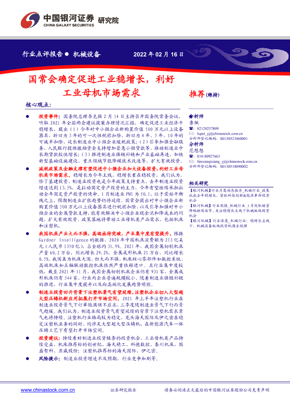 【银河证券】【20220216】国常会确定促进工业稳增长,利好工业母机市场需求-3页
