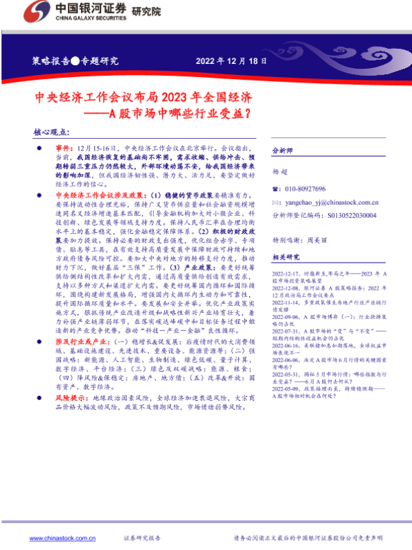 【银河证券】【20221218】中央经济工作会议布局2023年全国经济:A股市场中哪些行业受益?-13页
