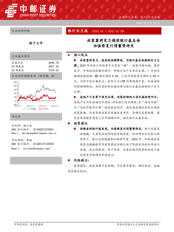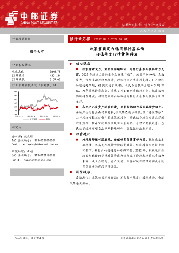 【中邮证券】【20220228】银行业月报:政策靠前发力稳固银行基本面,估值修复行情蓄势待发-22页