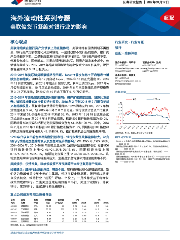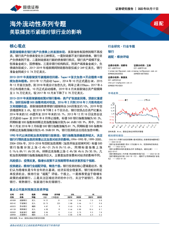 【国信证券】【20220317】银行业海外流动性系列专题:美联储货币紧缩对银行业的影响-17页
