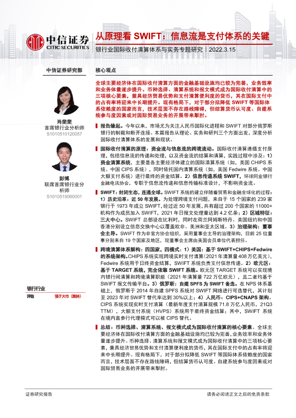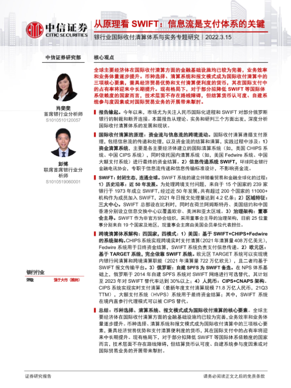 【中信证券】【20220315】银行业国际收付清算体系与实务专题研究:从原理看SWIFT,信息流是支付体系的关键-23页