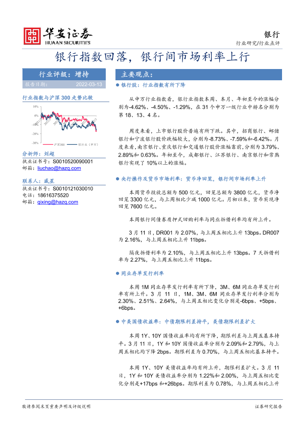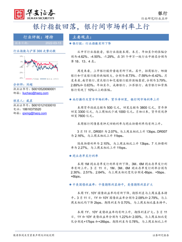 【华安证券】【20220313】银行业:银行指数回落,银行间市场利率上行-22页