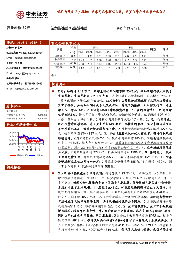 【中泰证券】【20220312】银行角度看2月社融:需求是未来核心因素,需货币等各项政策全面发力-15页
