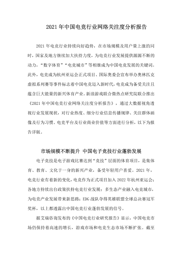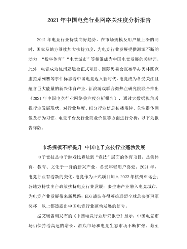 【新浪游戏联合微热点研究院】【2021】2021年中国电竞行业网络关注度分析报告-27页