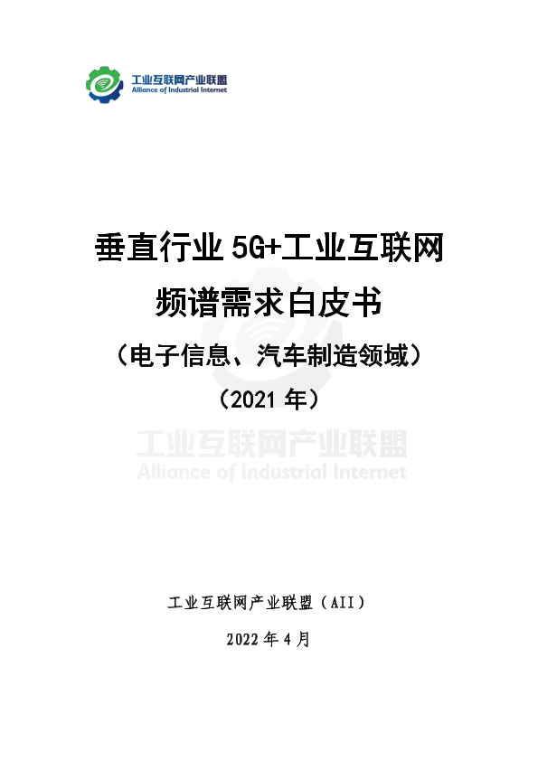 【工业互联网产业联盟(AII)】【202204】垂直行业5G+工业互联网频谱需求白皮书(电子信息、汽车制造领域)-36页