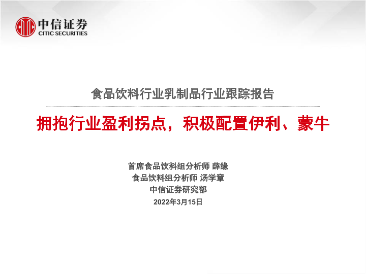 【中信证券】【20220315】食品饮料行业乳制品行业跟踪报告:拥抱行业盈利拐点,积极配置伊利、蒙牛-28页