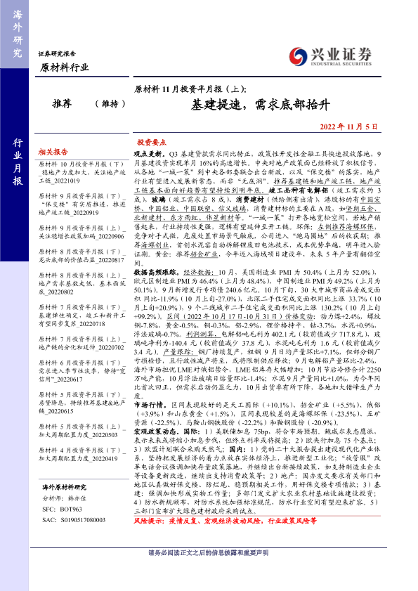 【兴业证券】【20221105】原材料 11月投资半月报(上):基建提速,需求底部抬升-26页