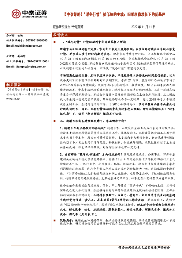 【中泰证券】【20221111】“暖冬行情”被低估的主线:四季度稳增长下的新基建-10页
