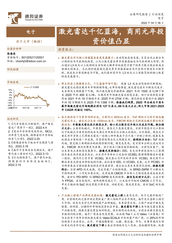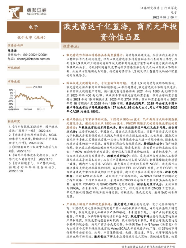 【德邦证券】【20220406】电子行业深度:激光雷达千亿蓝海,商用元年投资价值凸显-38页
