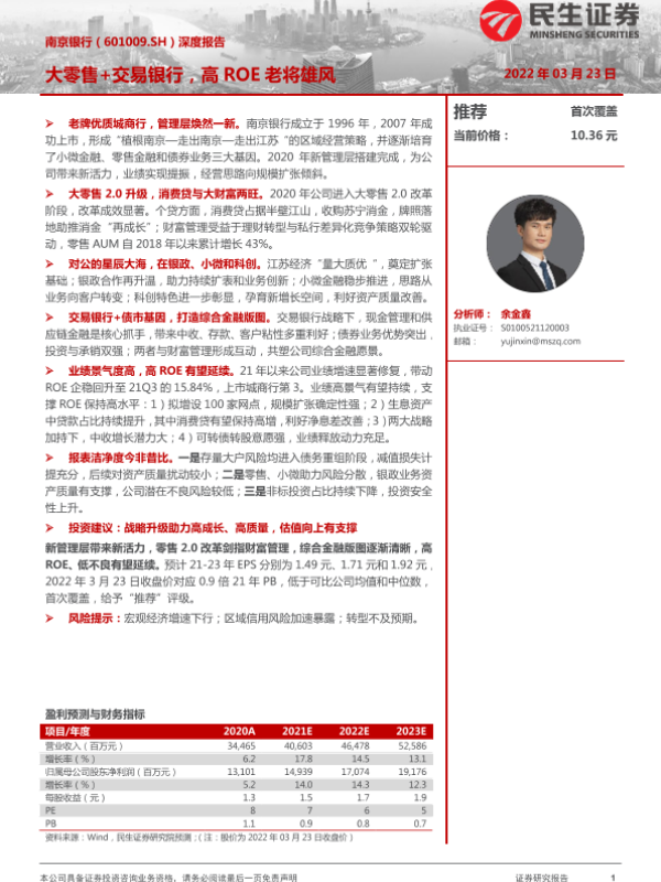 【民生证券】【20220323】南京银行-601009-深度报告:大零售+交易银行,高ROE老将雄风-43页