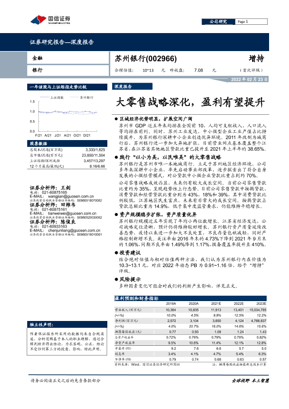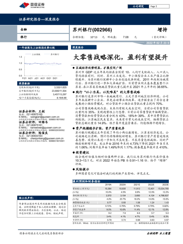 【国信证券】【20220223】苏州银行-002966-大零售战略深化,盈利有望提升-27页