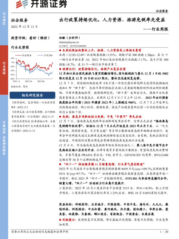 【开源证券】【20221211】20221211-开源证券-社会服务行业周报:出行政策持续优化,人力资源、旅游免税率先受益-20页
