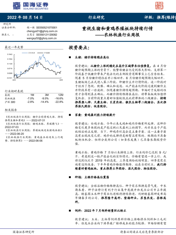【国海证券】【20220814】20220814-国海证券-农林牧渔行业周报:重视生猪和黄鸡养殖板块持续行情-21页