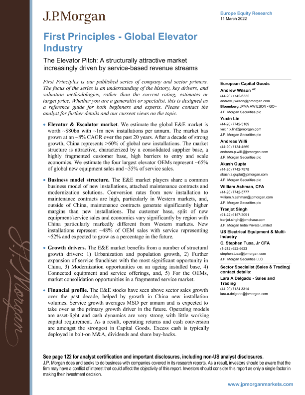 【J.P. Morgan】【20220311】J.P. 摩根-欧洲电梯行业-电梯推销:一个结构上具有吸引力的市场,越来越多地受到基于服务的收入流的驱动-128页