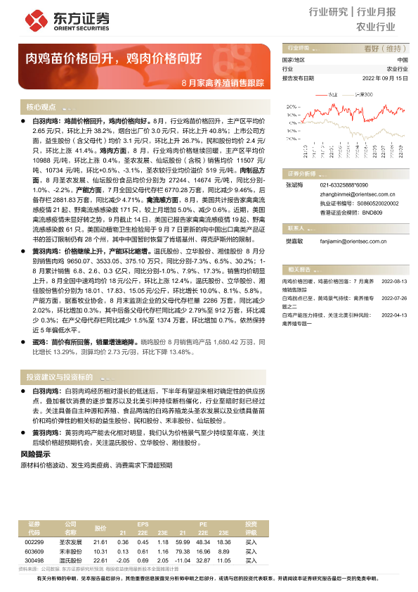 【东方证券】【20220915】农业8月家禽养殖销售跟踪:肉鸡苗价格回升,鸡肉价格向好-9页