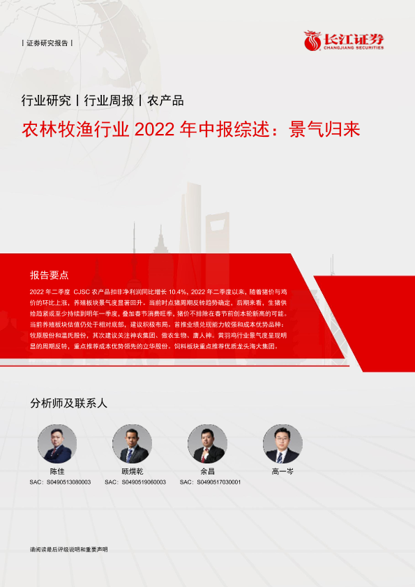 【长江证券】【20220915】农林牧渔行业2022年中报综述:景气归来-33页
