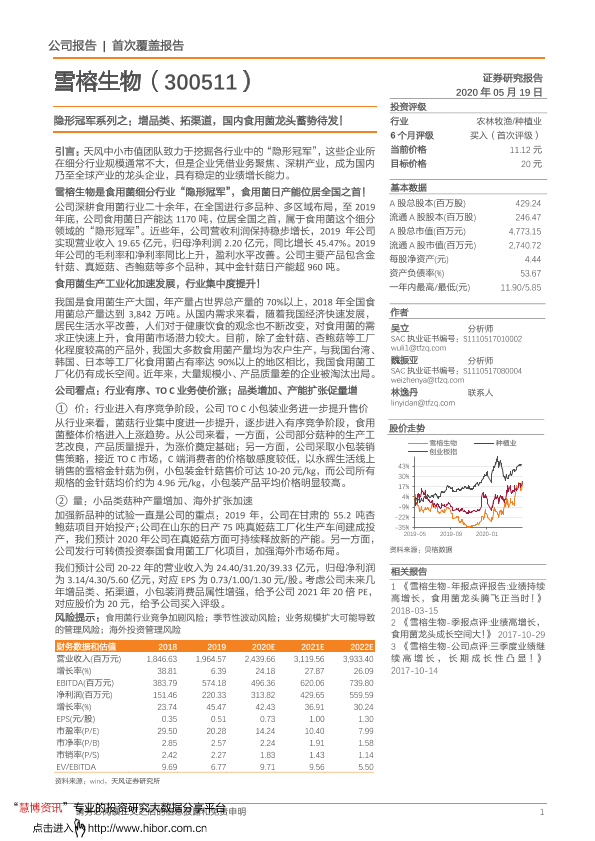 【天风证券】【20200519】隐形冠军系列之:增品类、拓渠道,国内食用菌龙头蓄势待发!-20页