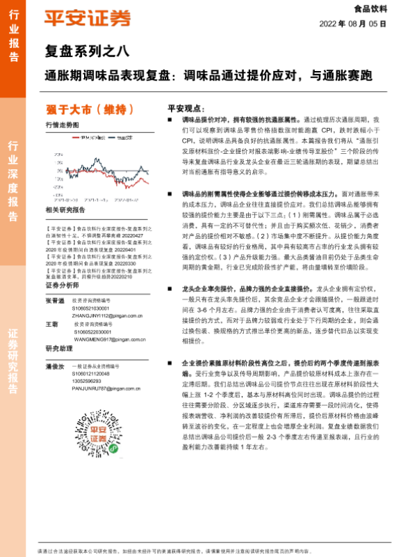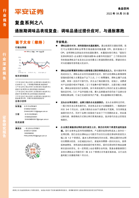 【平安证券】【20220805】食品饮料行业复盘系列之八:通胀期调味品表现复盘,调味品通过提价应对,与通胀赛跑-26页