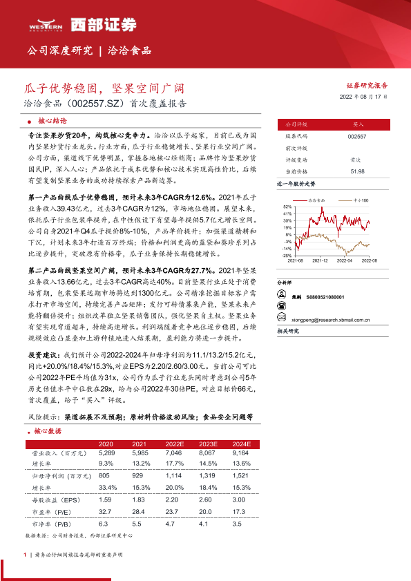 【西部证券】【20220817】20220817-西部证券-洽洽食品-002557-首次覆盖报告:瓜子优势稳固,坚果空间广阔-32页
