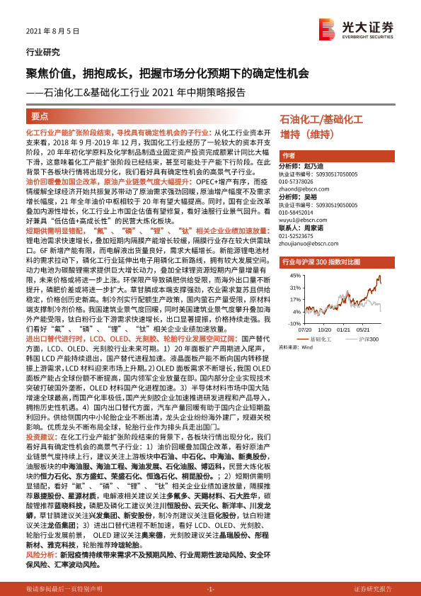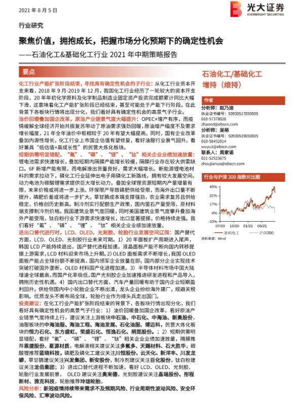 【光大证券】【20210805】石油化工&基础化工行业2021年中期策略报告:聚焦价值,拥抱成长,把握市场分化预期下的确定性机会-84页