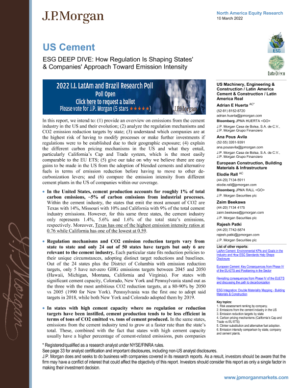【J.P. Morgan】【20220310】美国水泥:监管如何影响州和公司对排放强度的态度-37页