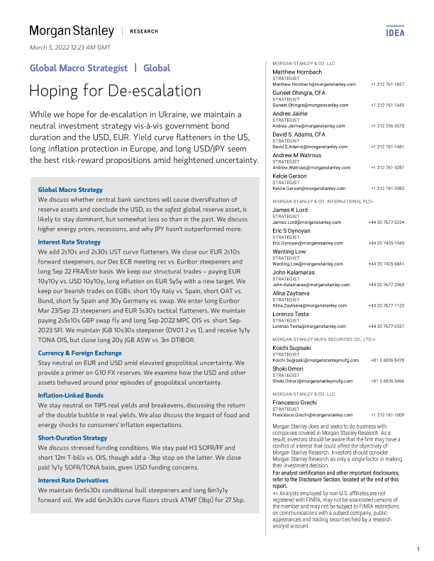 【Morgan Stanley】【20220305】摩根士丹利-全球宏观策略-希望缓和局势-117页