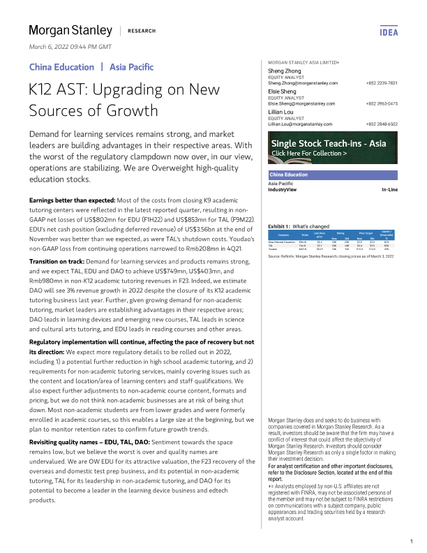 【Morgan Stanley】【20220306】摩根士丹利-中国教育行业-K12 AST:在新的增长源上升级-43页