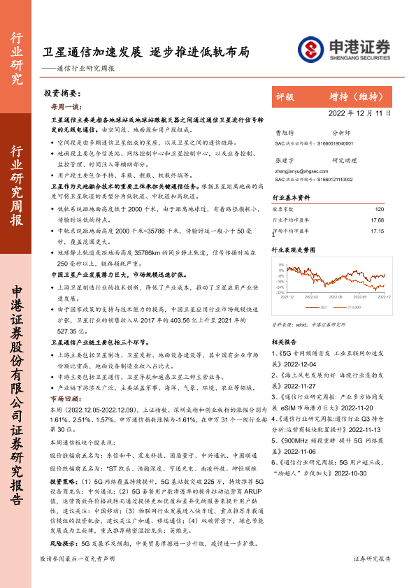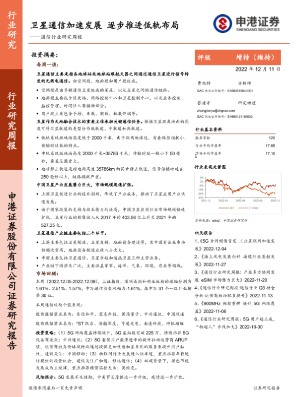 【申港证券】【20221211】通信行业研究周报:卫星通信加速发展,逐步推进低轨布局-18页