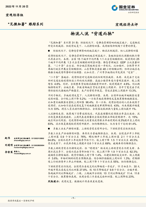 【国金证券】【20221120】“见微知著”跟踪系列:物流人流“背道而驰”-14页