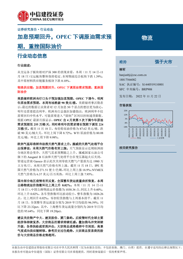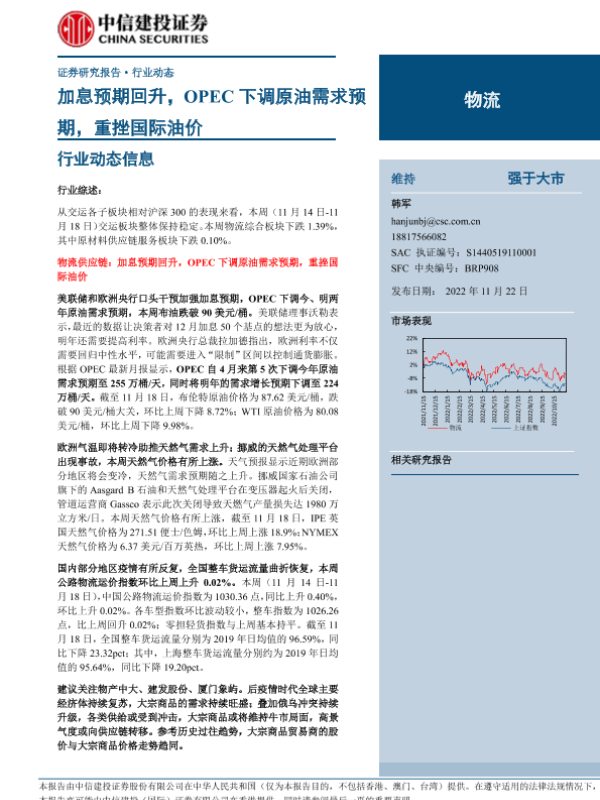 【中信建投证券】【20221122】20221122-中信建投-物流行业:加息预期回升,OPEC下调原油需求预期,重挫国际油价-19页