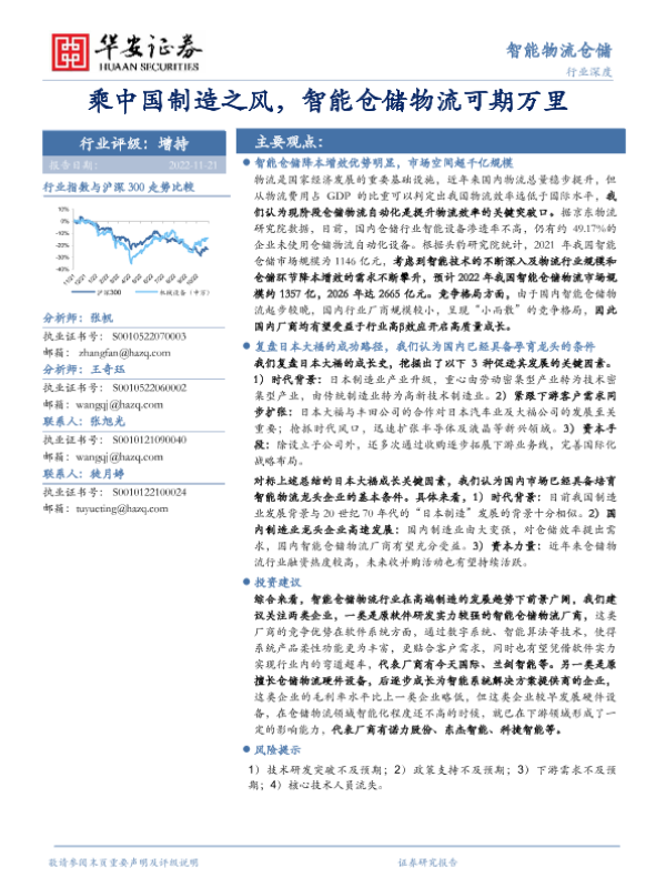 【华安证券】【20221121】智能物流仓储行业:乘中国制造之风,智能仓储物流可期万里-39页