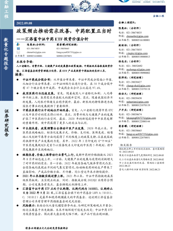 【国泰君安证券】【20220908】政策频出推动需求改善,中药配置正当时——汇添富中证中药ETF投资价值分析-22页